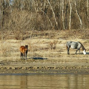 Din când în când, pelicanii și lebedele cutreieră zona, de dragul cabalinelor.